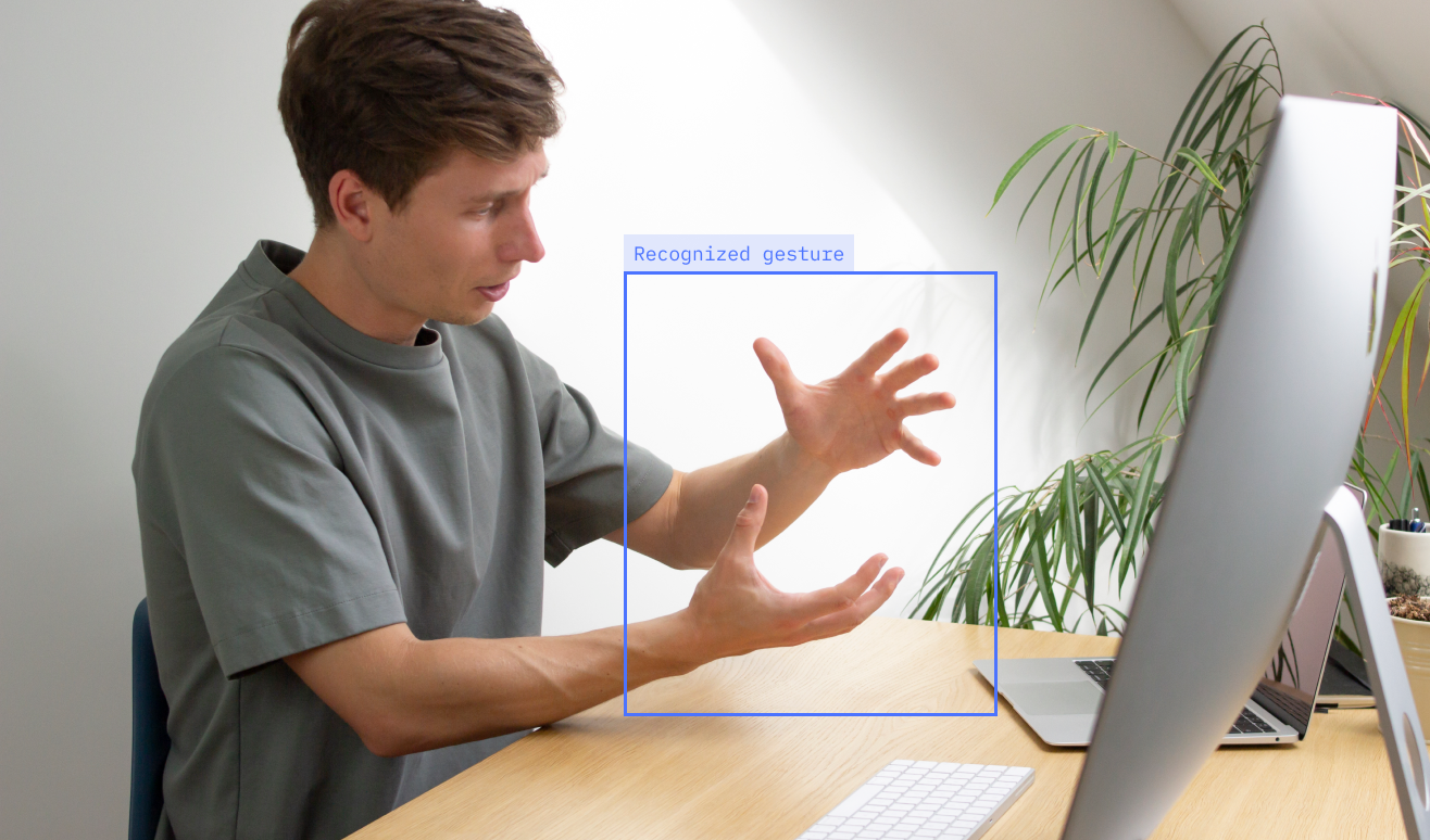 When a gesture is detected, the camera zoom is automatically adjusted to ensure the gesture is visible to the audience.