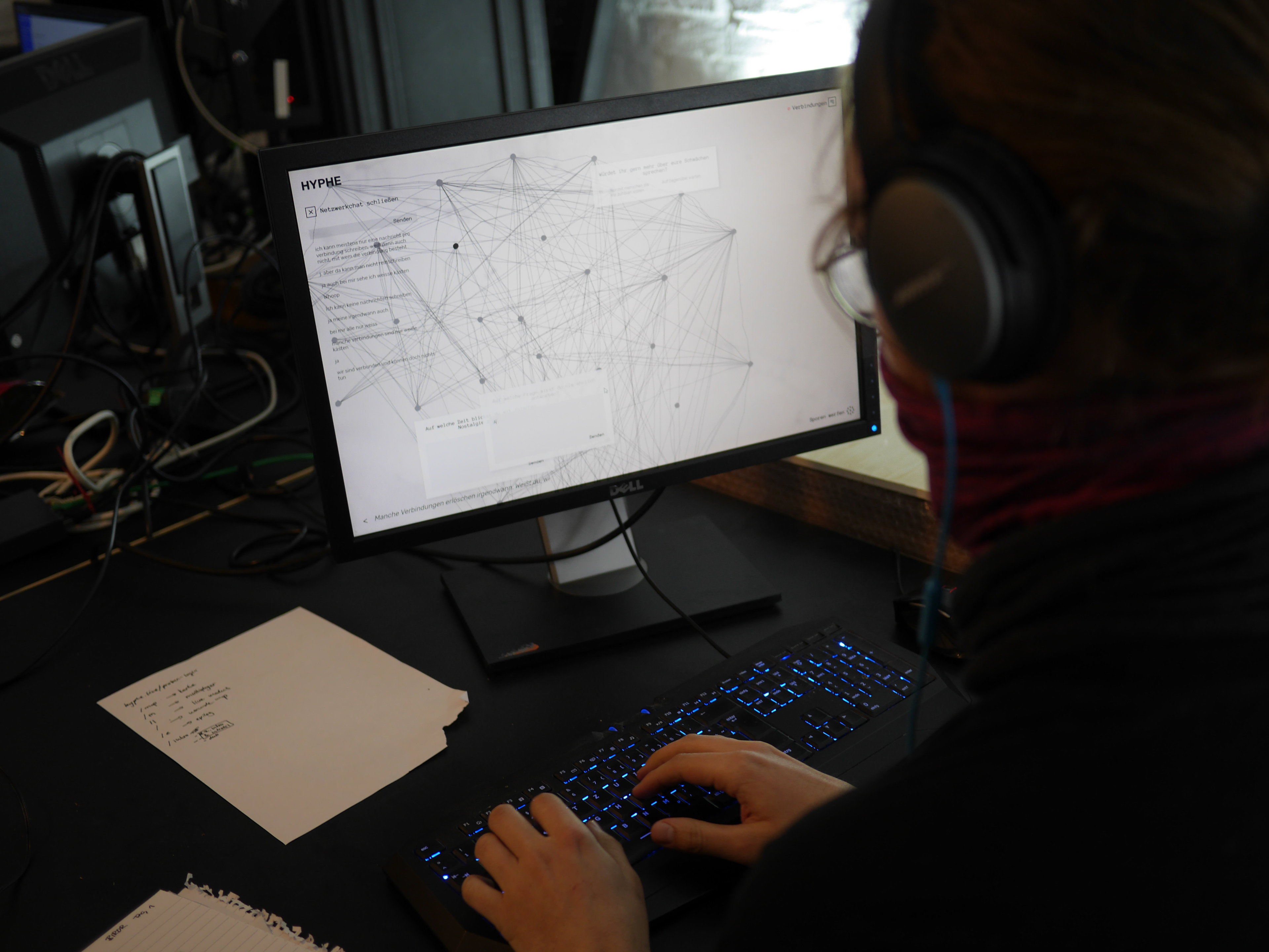 The image of hype - a fungus tissue - became the inspirational image for the structure and visualization of the platform's network. We explored different aesthetic directions and possibilities to realize them through generative design. Subsequently, we started to create the other graphical interface elements around it. The overall look and feel as determined by Birder being a more or less unprofessional platform creator. This concept led to a somewhat unpolished and offbeat interface.